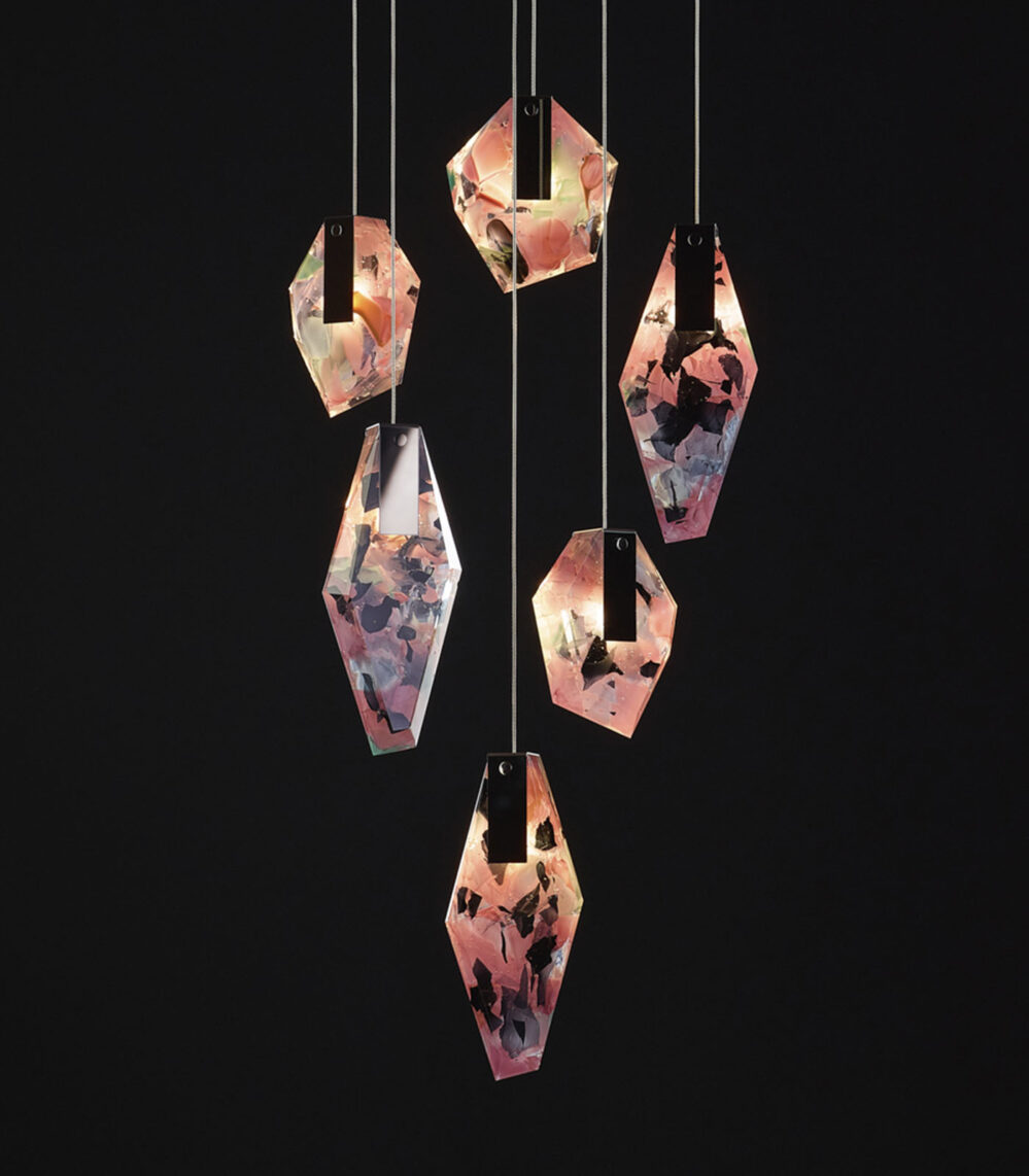 BOMMA’s lighting undergoes strict quality control. Pieces with imperfections inevitably end up as glass shards, despite the many hours glassmakers spent creating them. However, glass is a material that can be remelted and repurposed. This unconventional process inspired the designers from DECHEM Studio to create the material Fragmentglass, which upcycles waste shards and breathes new life into them.