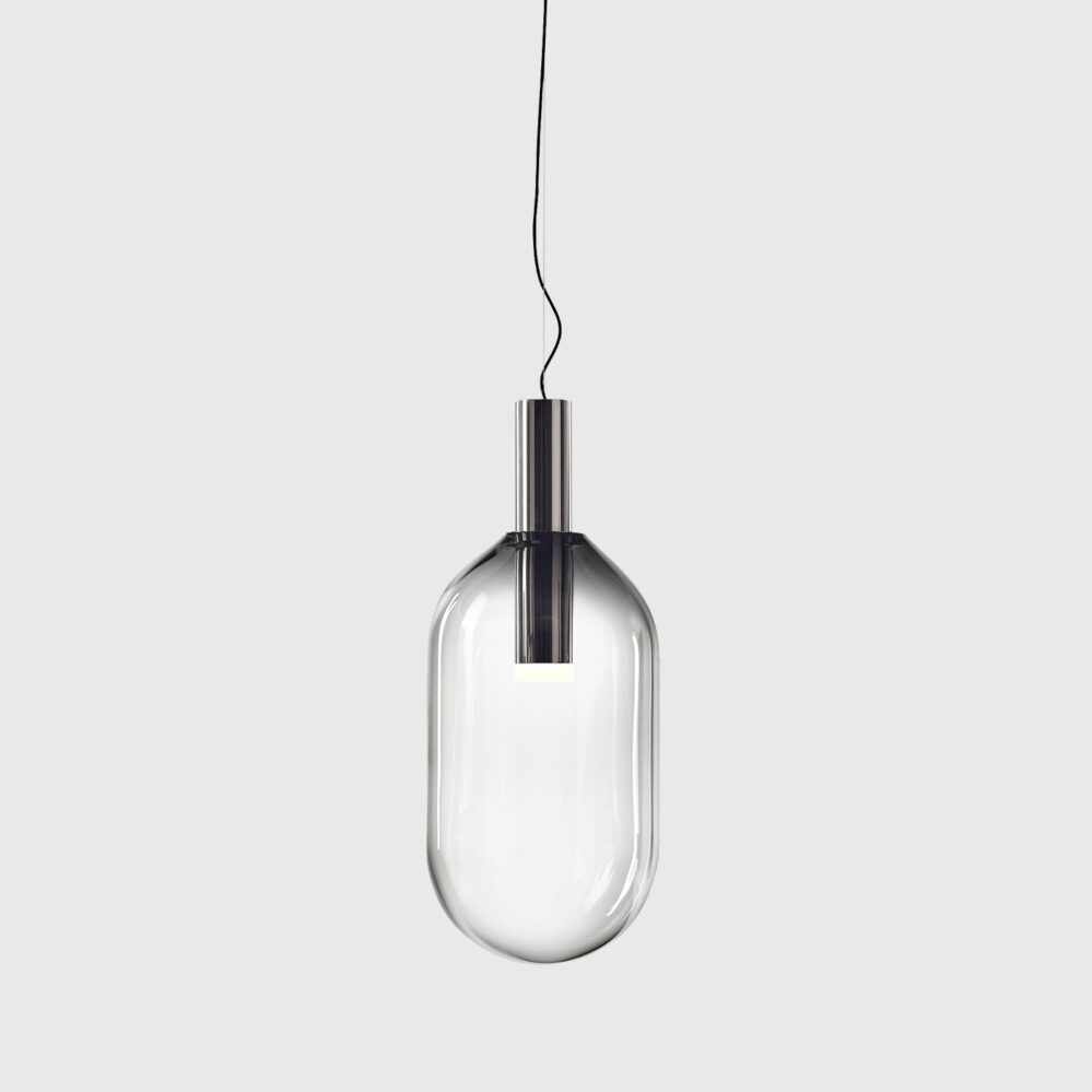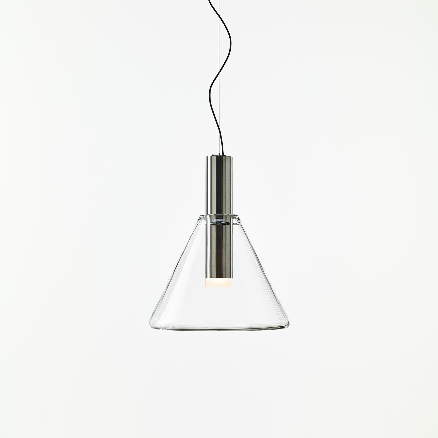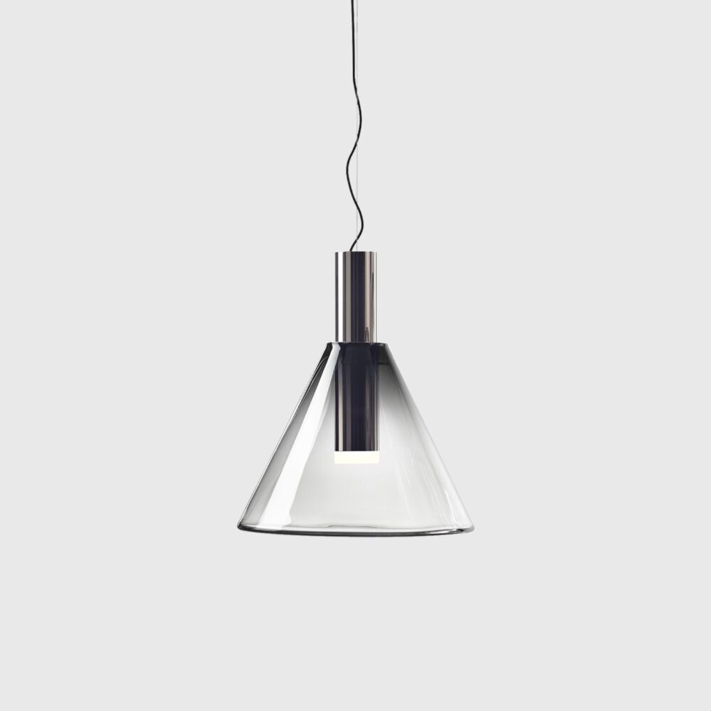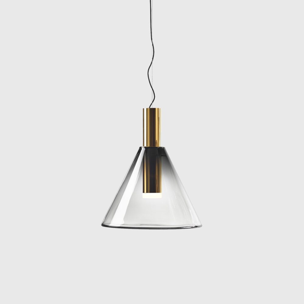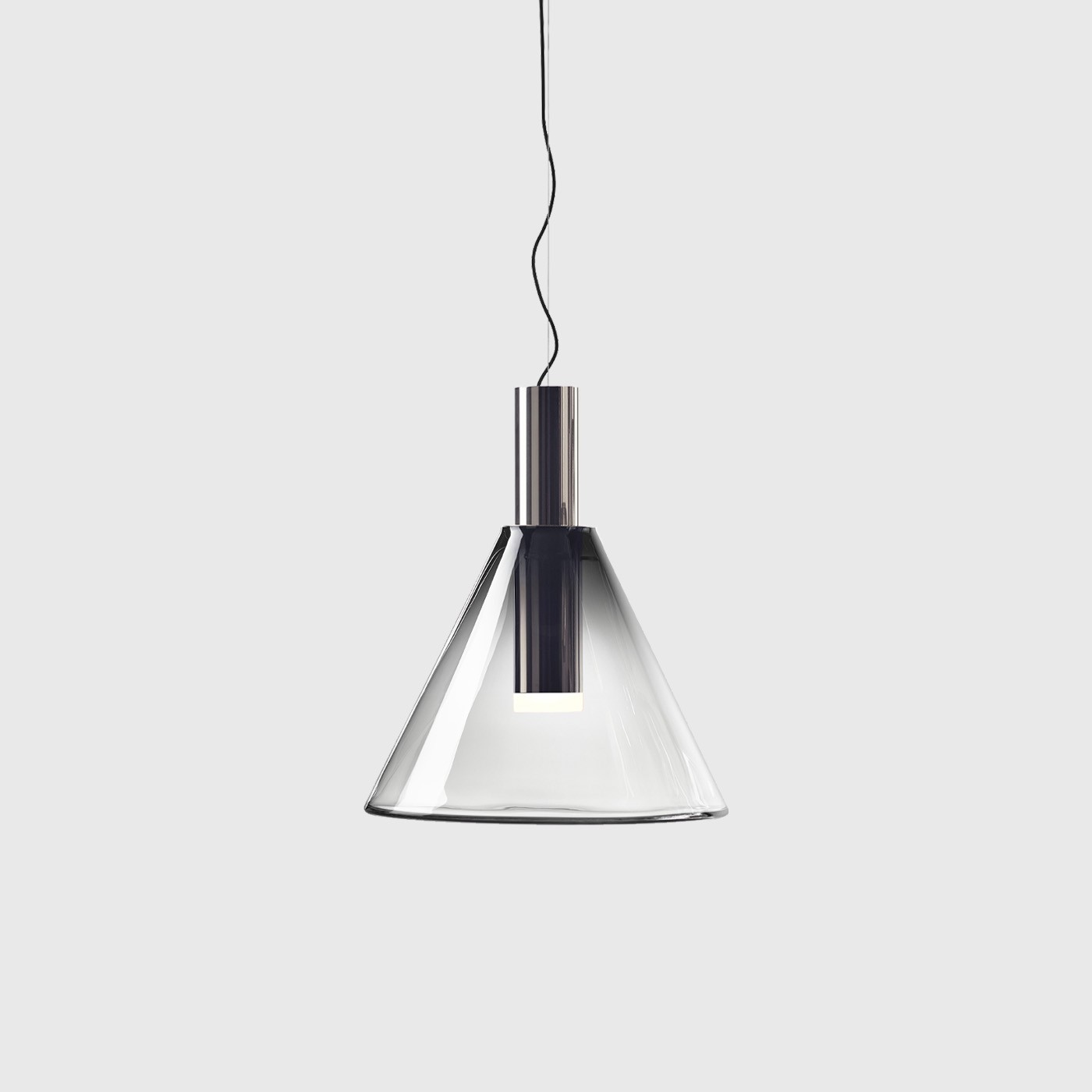 Phenomena Pendant Lights by BOMMA is part of a collection inspired by simple shapes: a circle, a triangle, and an oval. The simple forms are what you see on first sight and are complemented by the complex characteristics of glass – difficult, yet versatile and fragile yet strong. Phenomena Pendant Light is available in a choice of four structure finishes, including Gold, Brushed Gold, Silver or Brushed Silver and either a Smoke or Clear glass finish.