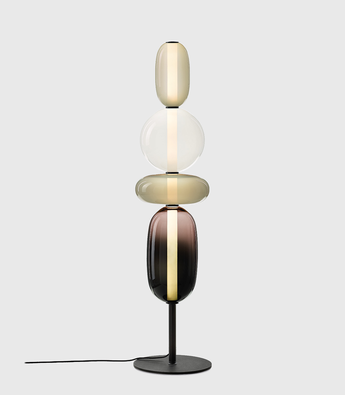 Pebbles Floor Lamp is available in a choice of three different glass finish and shape combinations.