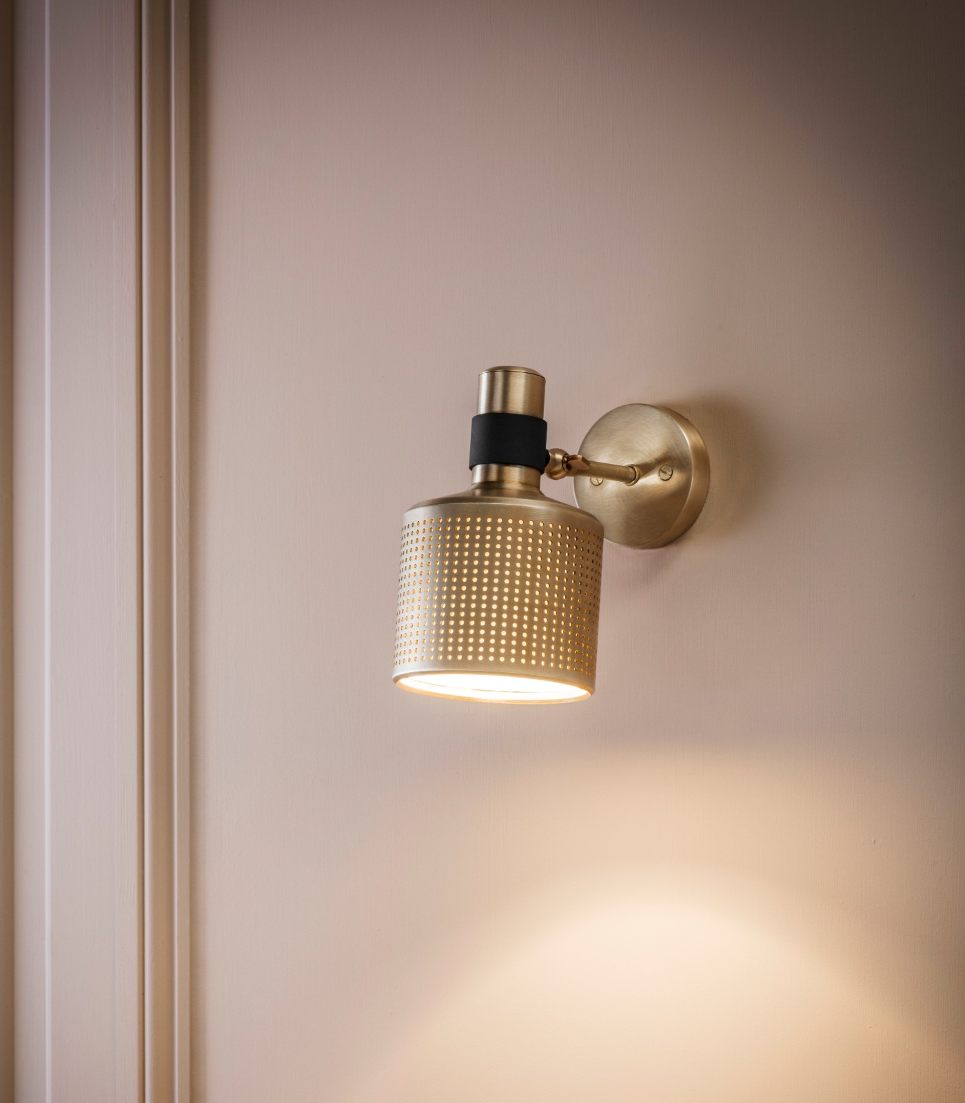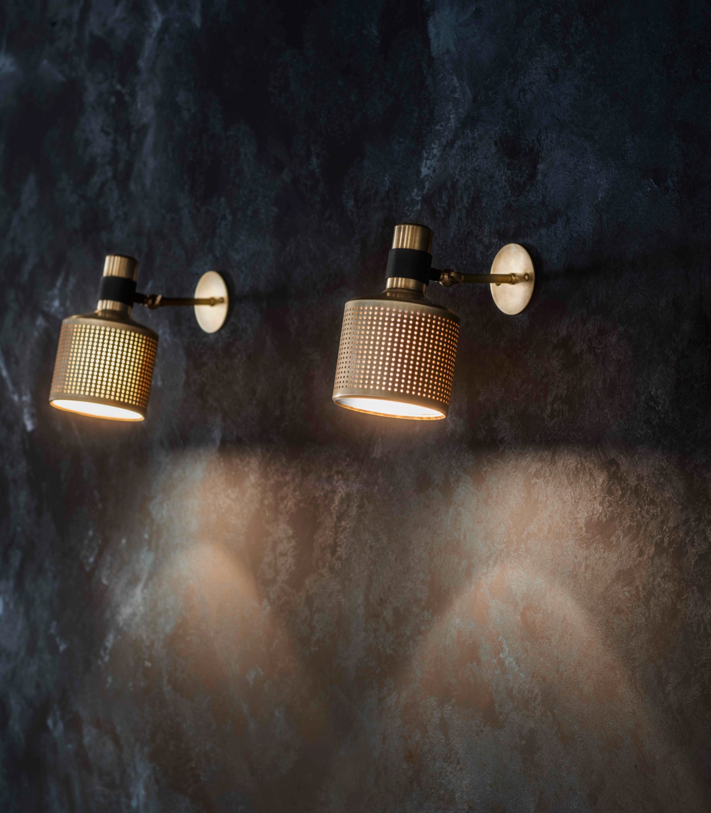 Riddle Wall Light by Bert Frank is literally riddled with holes like a colander. It’s the concept at the heart of the design, the subtle glow of light through tiny holes.