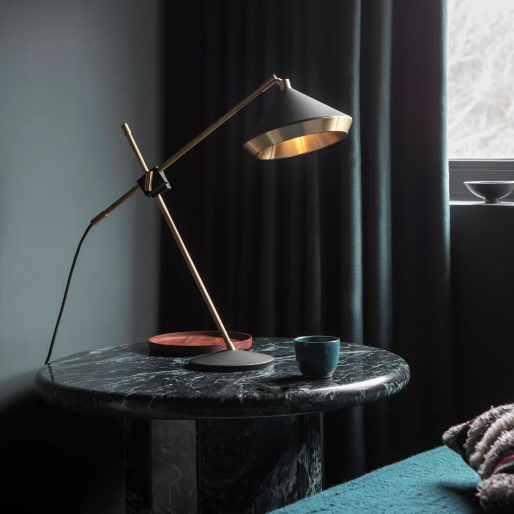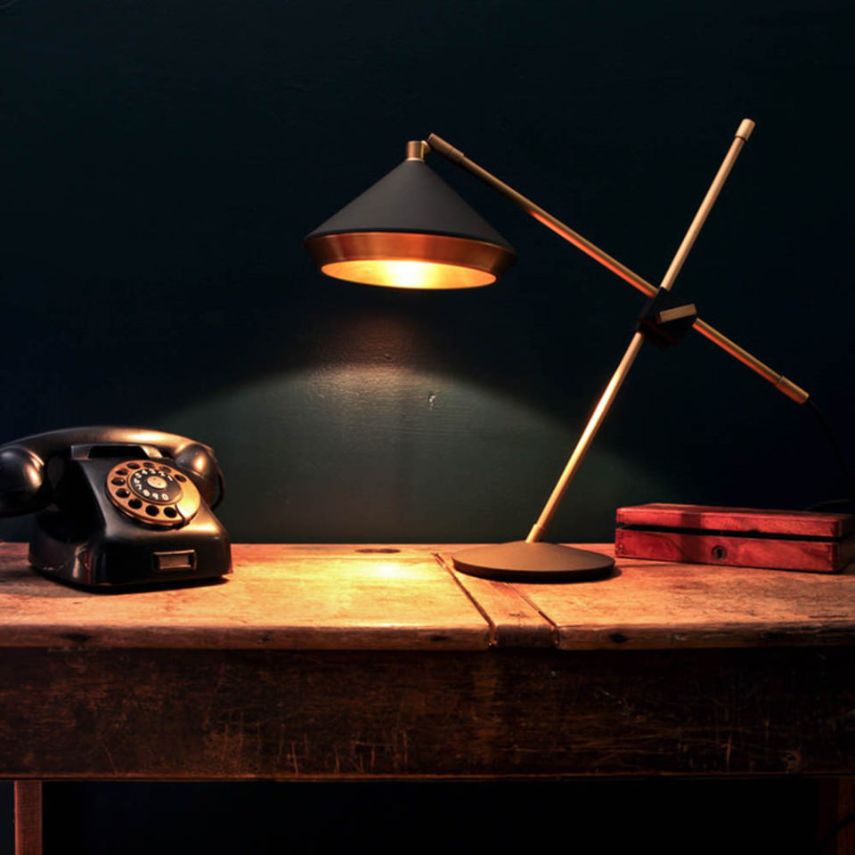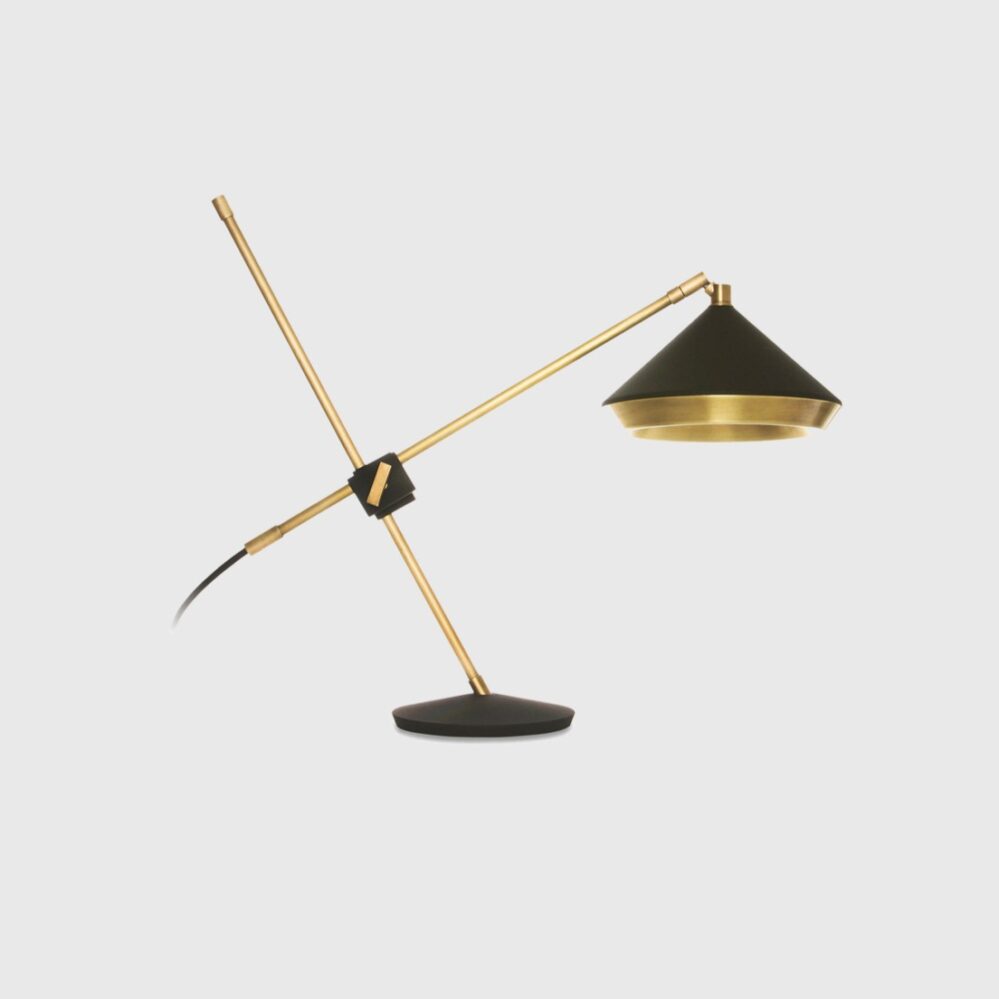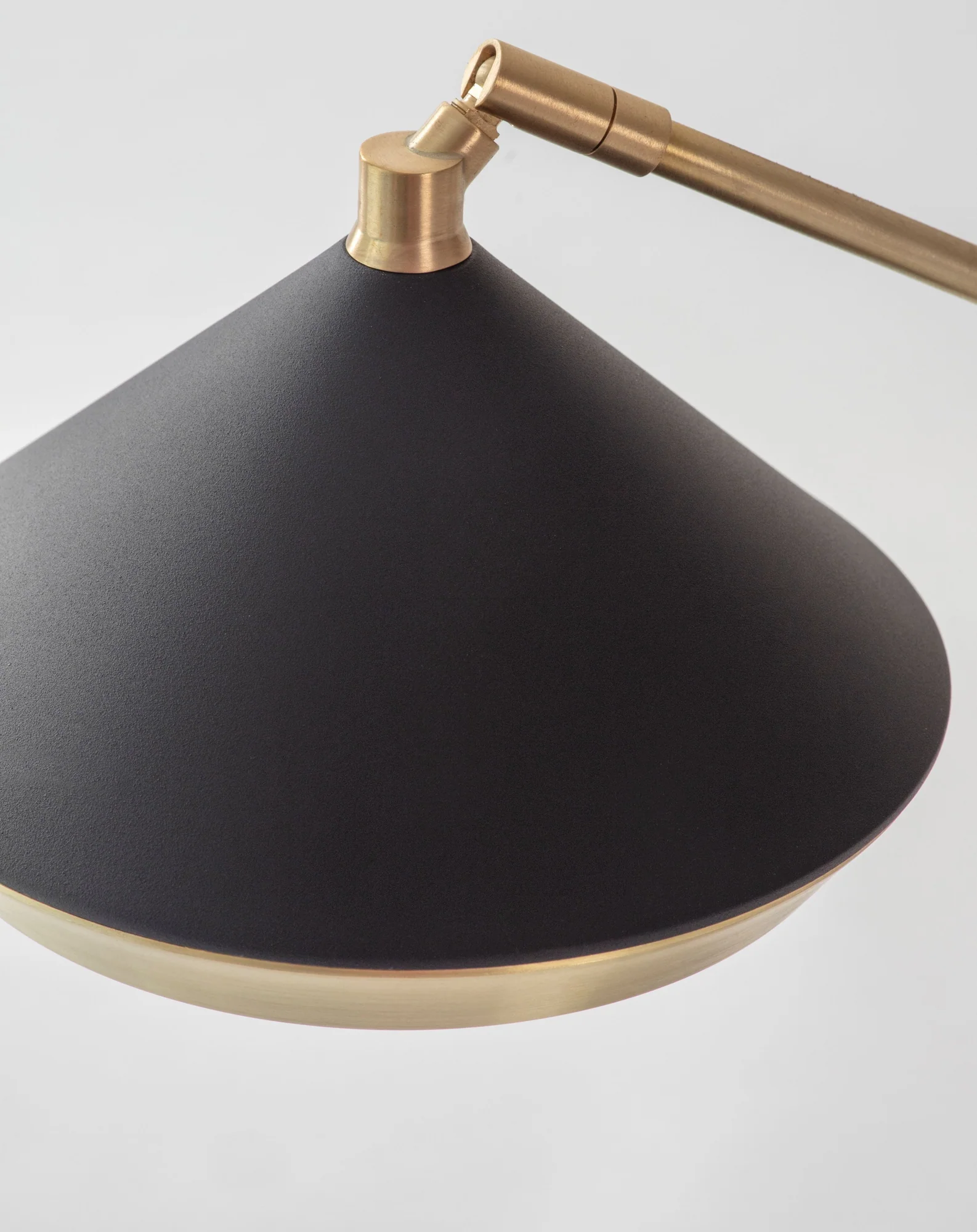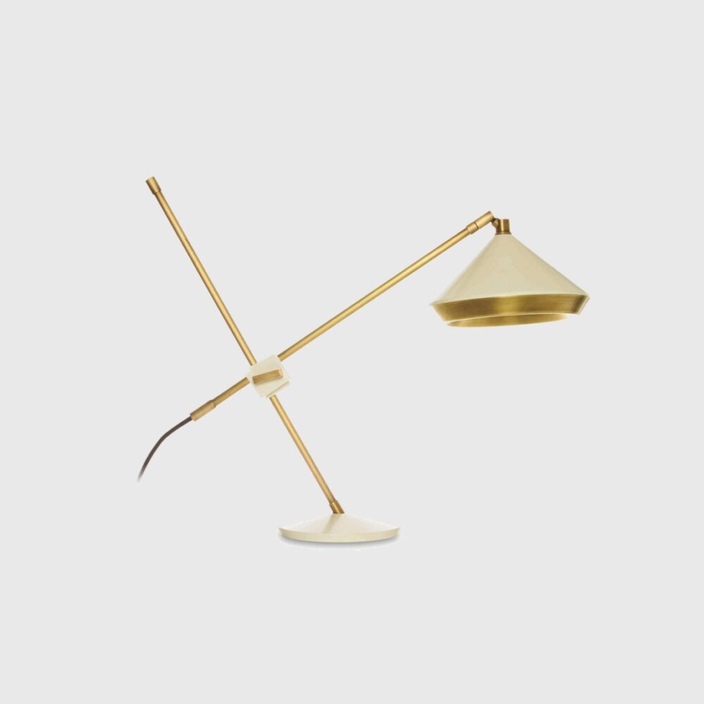 Shear Table Lamp by Bert Frank is a timeless task lamp crafted from brass and turned metal. A brushed finish on the inner shade produces a soft, warm light. Adjustable for height, reach and angle. The Shear collection was the first product to be created by the Bert Frank team back in 2013.