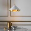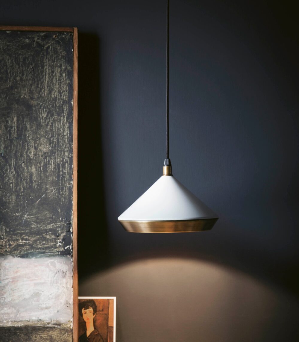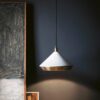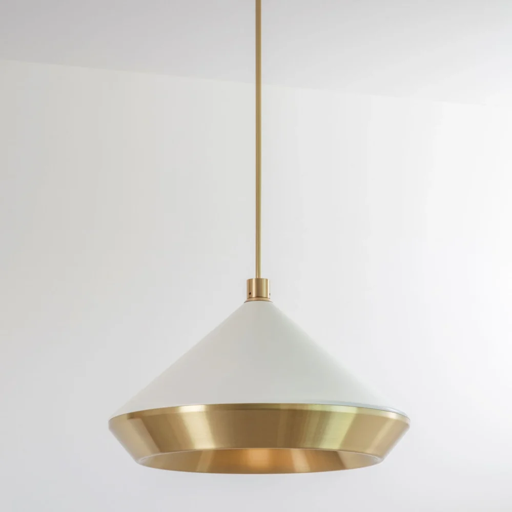 Shear Pendant Light by Bert Frank is a timeless design crafted in brass and turned metal. Compact and versatile. A brushed finish on the inner shade produces a soft, warm light. The Shear collection is available in wall light, table lamp and a floor lamp variations.