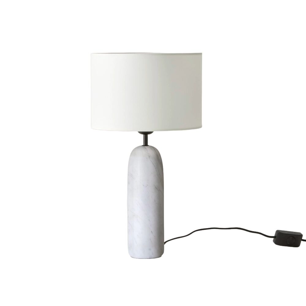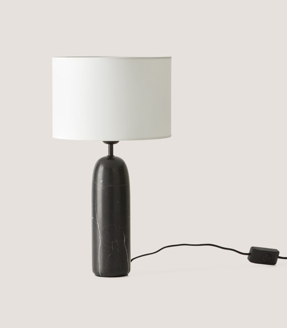 Shin Table Lamp by Aromas was designed by Pepe Fornas. Shin exudes elegant and refined characteristics as seen by its base, made of marble. The smooth slim roundedness of its structure accentuates clean lines and subtle luxuriousness. Available in black or white marble.